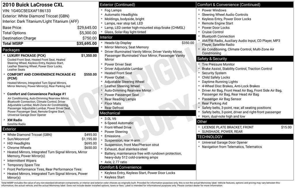 - Vehicle Name: Buick LaCrosse