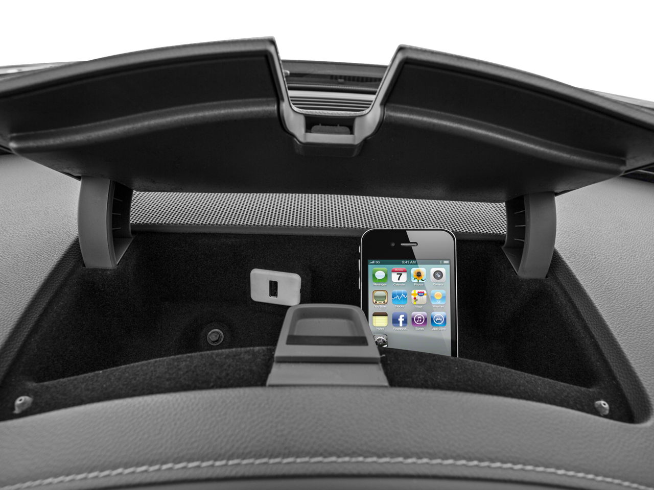 - Audio system feature, USB port, located in the center console