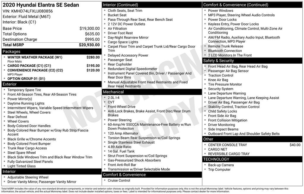 Discover the perfect blend of style, technology, and practicality in this 2020 Hyundai Elantra SE. Experience the difference for yourself by scheduling a test drive today. We're confident you'll be impressed by this exceptional sedan.