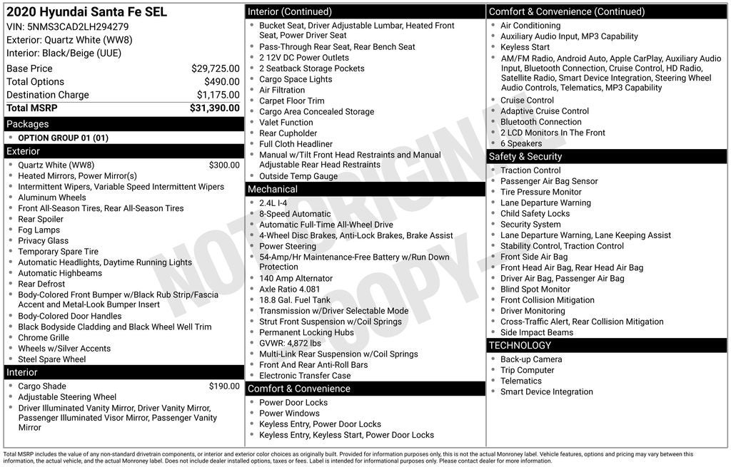 - Vehicle Name: Hyundai Santa Fe