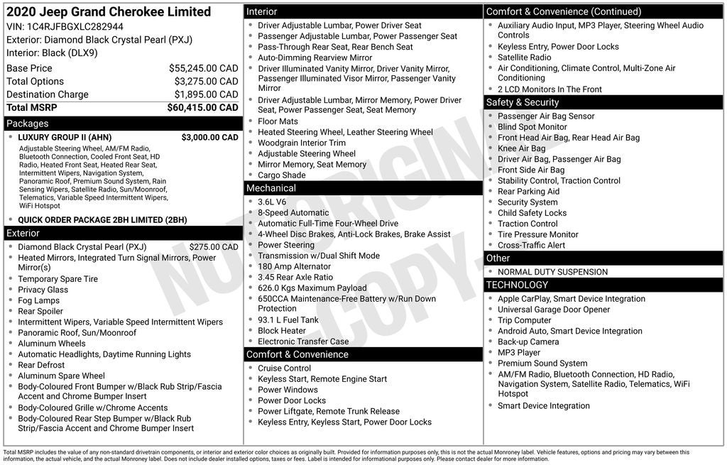 2020 Jeep Grand Cherokee Limited Dual-Pane Panoramic Sunroof
