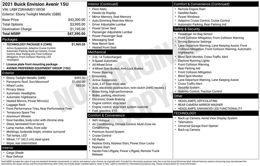 Experience the difference for yourself. Visit our showroom today and let us demonstrate why the 2021 Buick Envision Avenir should be your next vehicle.