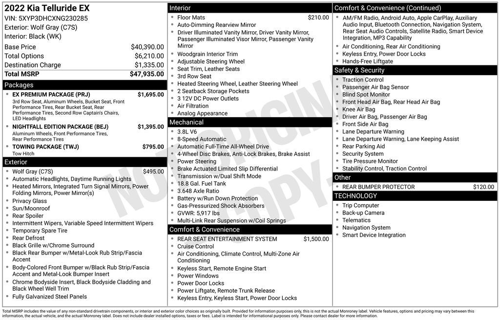 - Vehicle Name: Kia Telluride