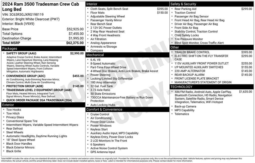 But don't just take our word for it. Experience the power and capability of this 2024 Ram 3500 Tradesman for yourself. Schedule a test drive today and see how this truck can transform the way you work.