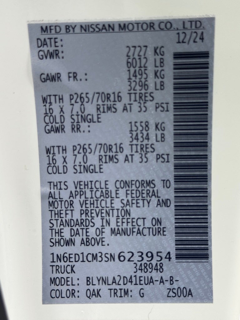 **4WD, **APPLE CAR PLAY, **HANDS FREE Bluetooth®, 4WD, 120V Power Outlet in Bed, 120V Power Outlet in Rear Center Console, 16 Styled Steel Wheels, NissanConnect Services & Wi-Fi Hotspot Delete, S Utility Package, Spray-In Bedliner, Telematics Delete Package (H03).