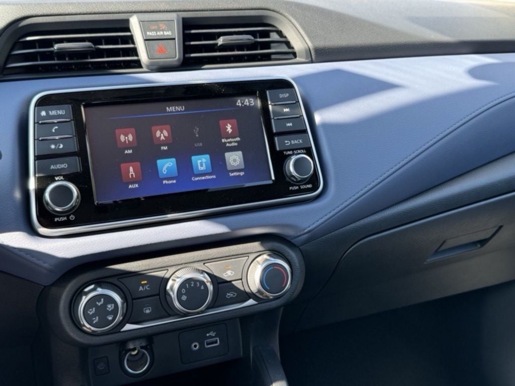 - Radio: AM/FM Audio System -inc: RDS, MP3, aux-in, 7" Advanced Drive-Assist Display, NissanConnect featuring Apple CarPlay and Android Auto, Bluetooth® hands-free phone system, streaming audio via Bluetooth®, interface for iPod and other compatible devices, hands-free text messaging assistant, Siri Eyes Free/Google Assistant voice recognition, 4 speakers and 3 USB ports (2-charge only)